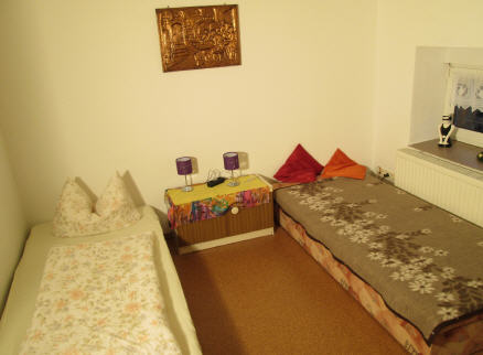 Unsere drei Fremdenzimmer sind funktionell eingerichtet. Es steht je ein Zimmer mit einem, mit zwei und mit drei Betten zur Verfügung. Die Zimmer sind um einen zentralen Flur gruppiert. Das modern eingerichtete Gemeinschaftsbad verfügt über eine Dusche, ein Waschbecken und WC.